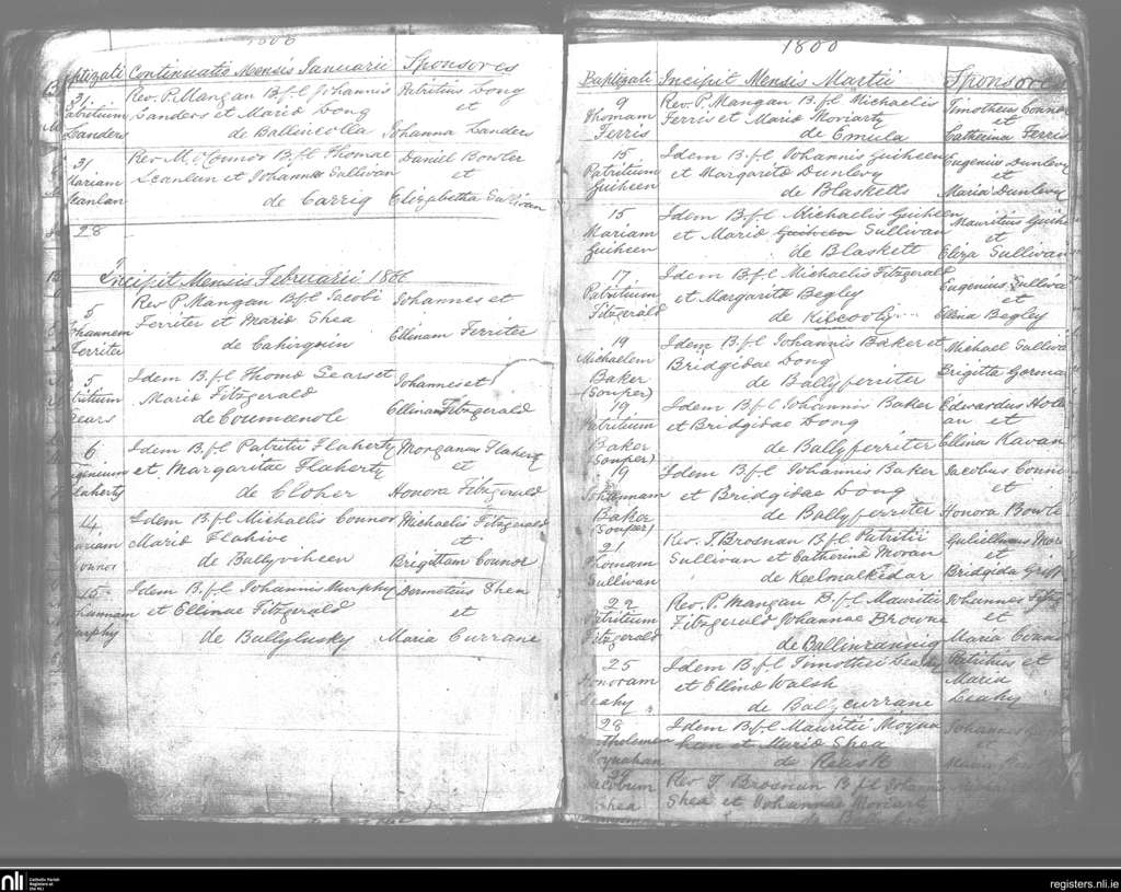 Kilmelchidar; County of Kerry; Diocese of Kerry. Baptisms, Jan. 1866 to Mar. 1866