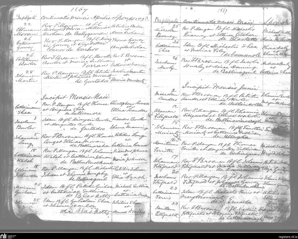 Kilmelchidar; County of Kerry; Diocese of Kerry. Baptisms, Apr. 1867 to June 1867