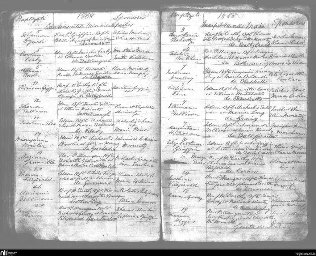 Kilmelchidar; County of Kerry; Diocese of Kerry. Baptisms, Apr. 1868 to May 1868