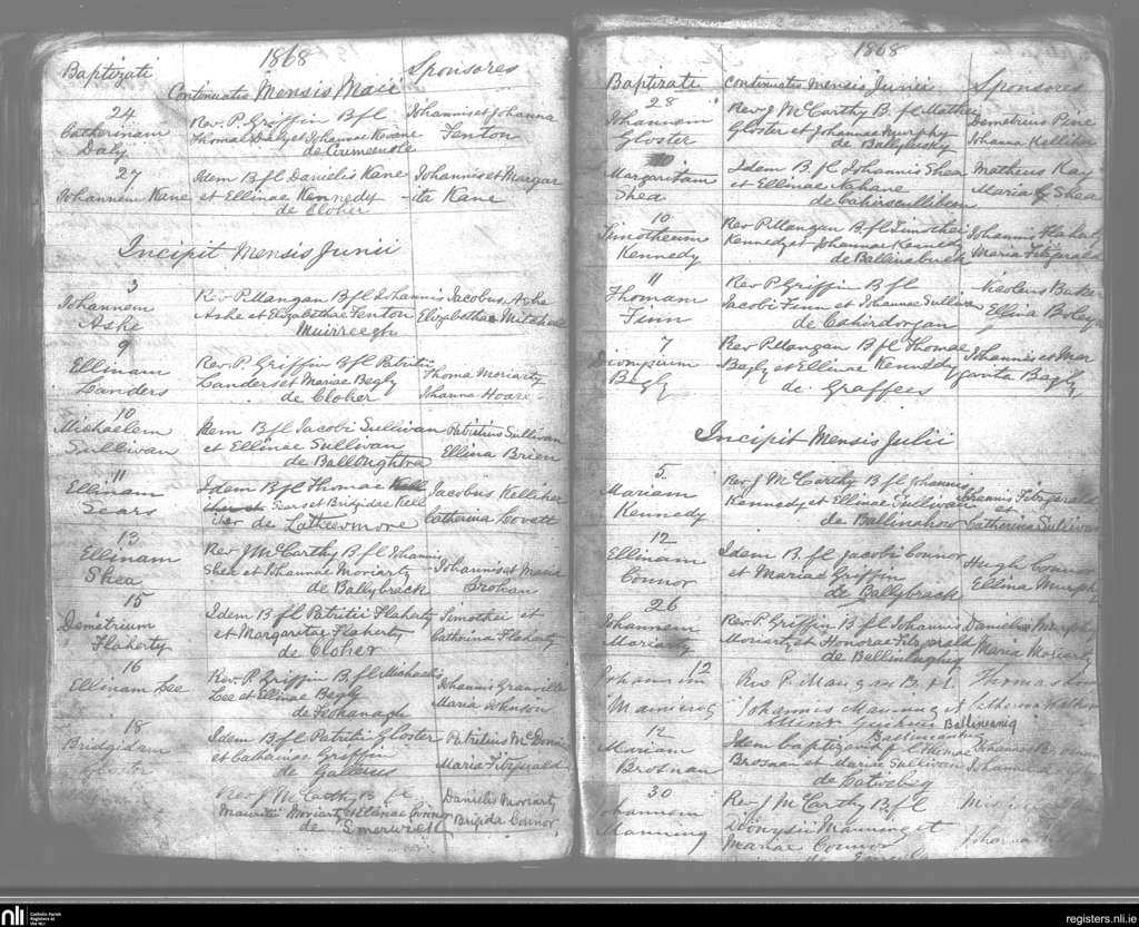 Kilmelchidar; County of Kerry; Diocese of Kerry. Baptisms, May 1868 to July 1868