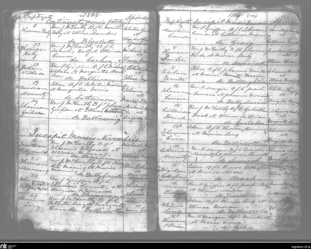 Kilmelchidar; County of Kerry; Diocese of Kerry. Baptisms, Oct. 1868 to Nov. 1868