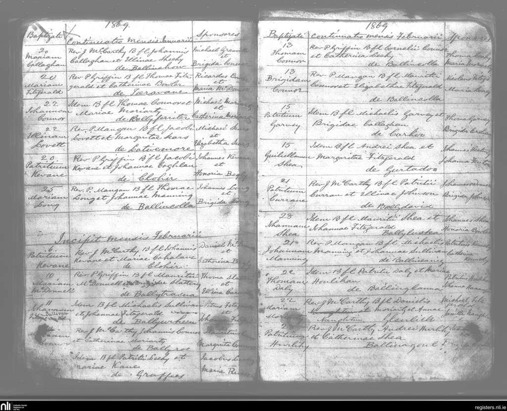 Kilmelchidar; County of Kerry; Diocese of Kerry. Baptisms, Jan. 1869 to Feb. 1869