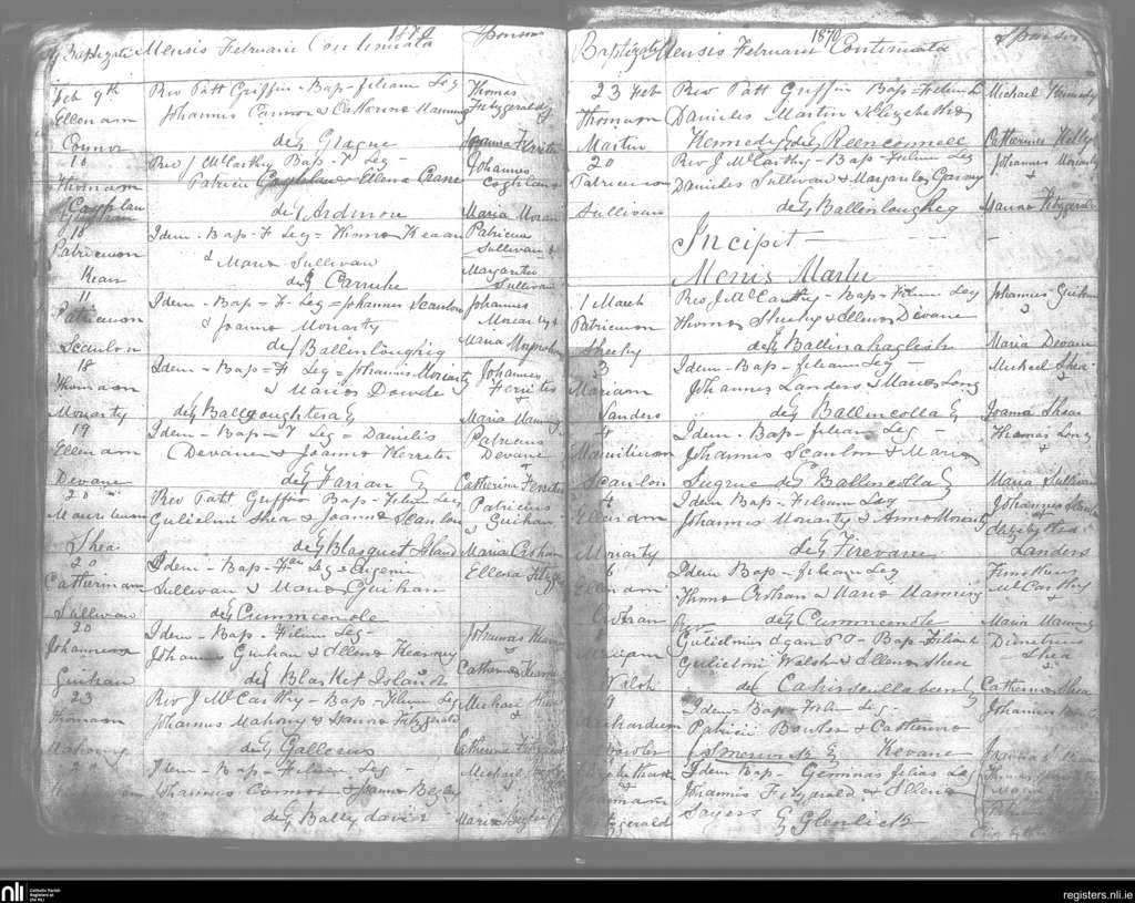 Kilmelchidar; County of Kerry; Diocese of Kerry. Baptisms, Feb. 1870 to Mar. 1870