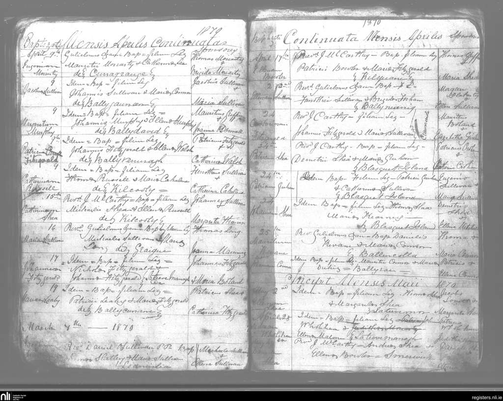 Kilmelchidar; County of Kerry; Diocese of Kerry. Baptisms, Apr. 1870 to May 1870