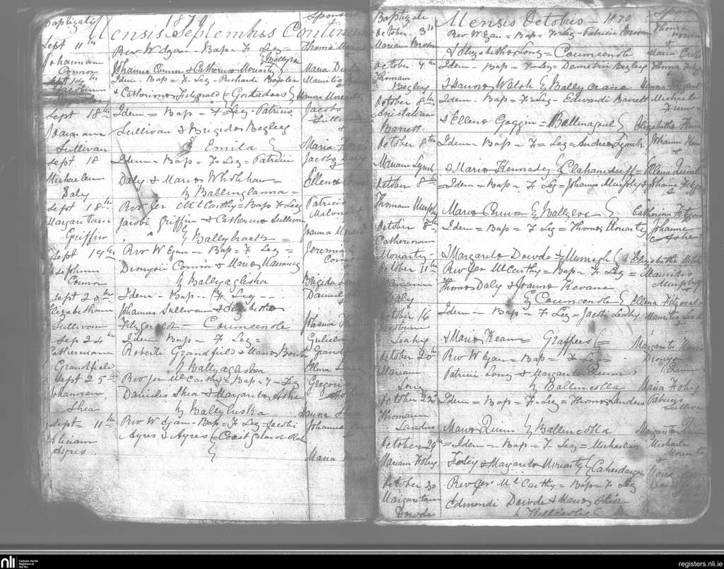 Kilmelchidar; County of Kerry; Diocese of Kerry. Baptisms, Sep. 1870 to Oct. 1870