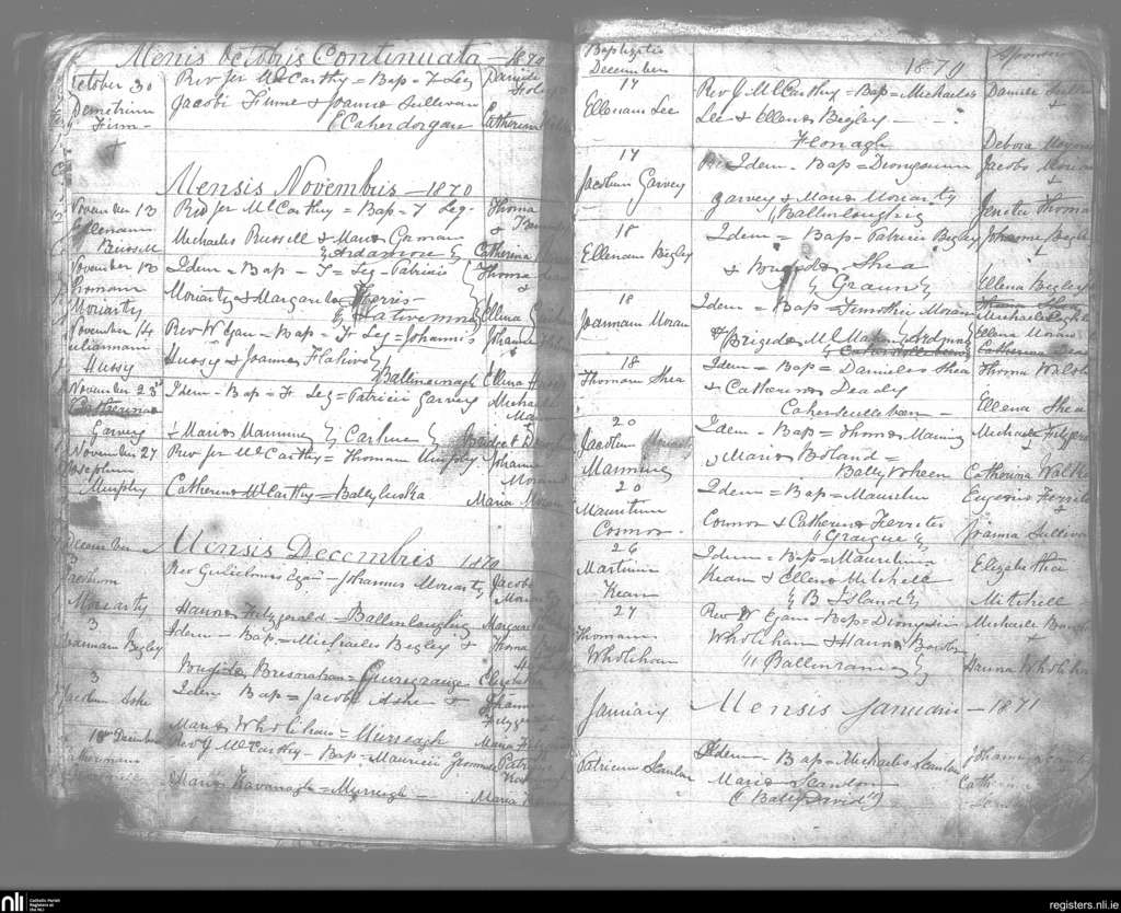 Kilmelchidar; County of Kerry; Diocese of Kerry. Baptisms, Oct. 1870 to Jan. 1871