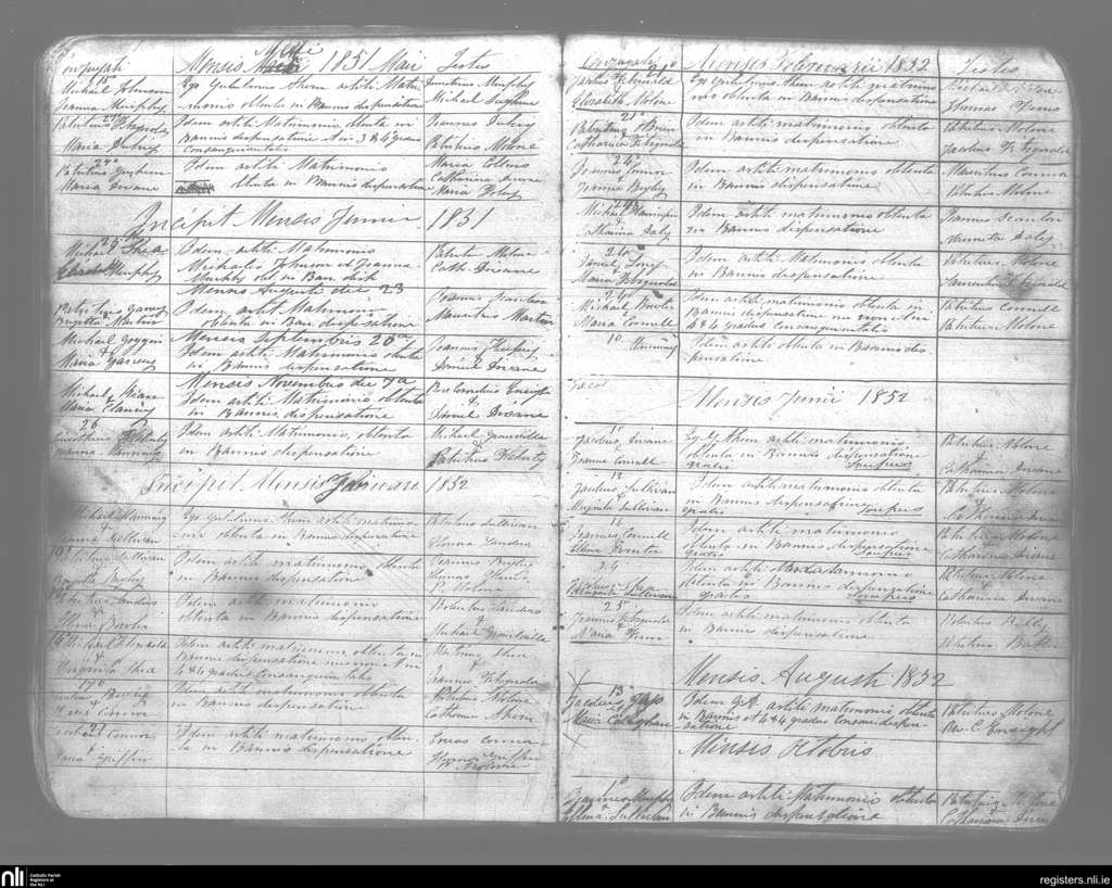 Kilmelchidar; County of Kerry; Diocese of Kerry. Marriages, May 1851 to Oct. 1852
