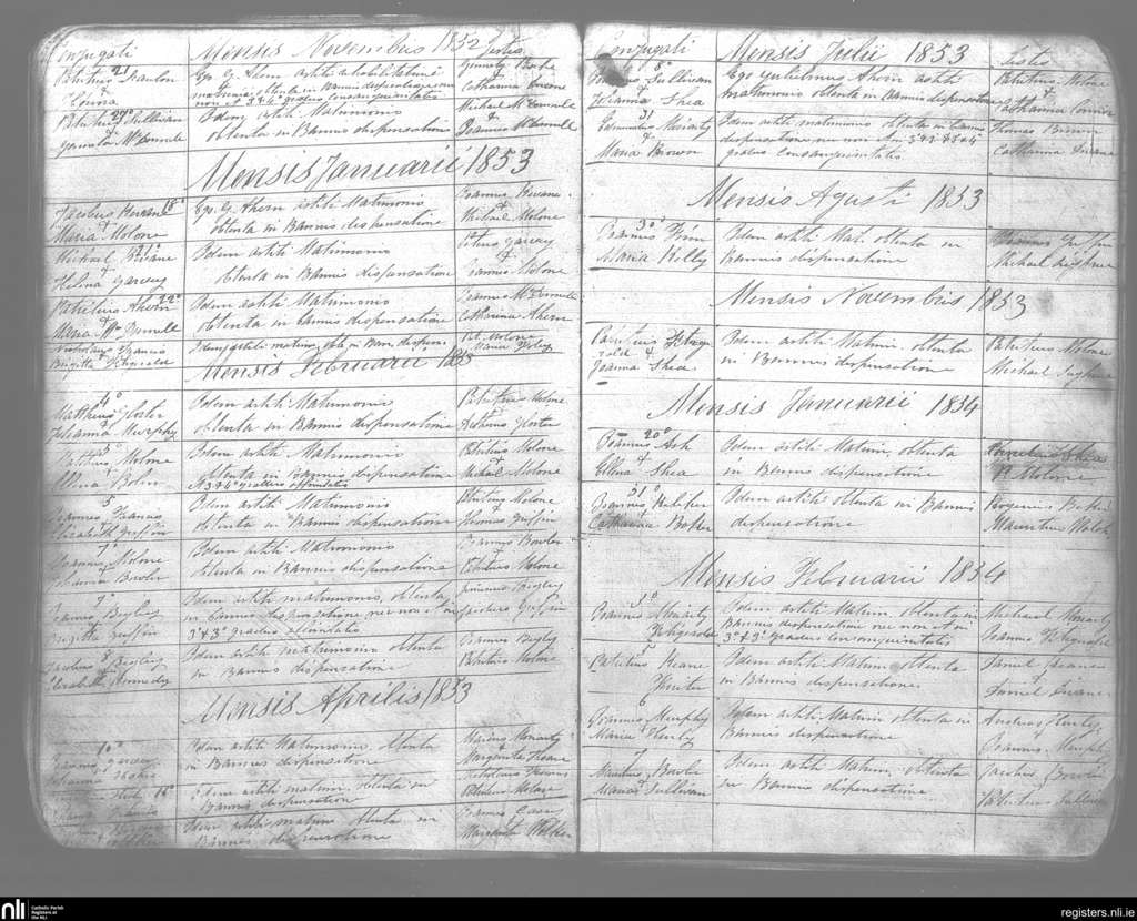 Kilmelchidar; County of Kerry; Diocese of Kerry. Marriages, Nov. 1852 to Feb. 1854