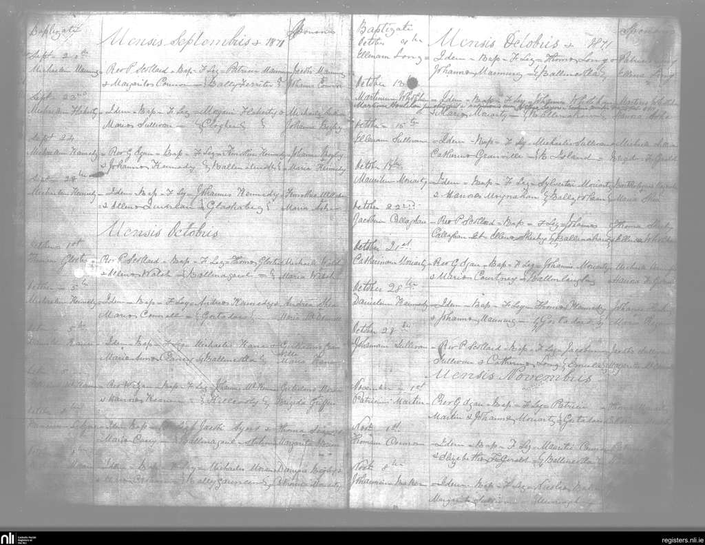 Kilmelchidar; County of Kerry; Diocese of Kerry. Baptisms, Sep. 1871 to Nov. 1871