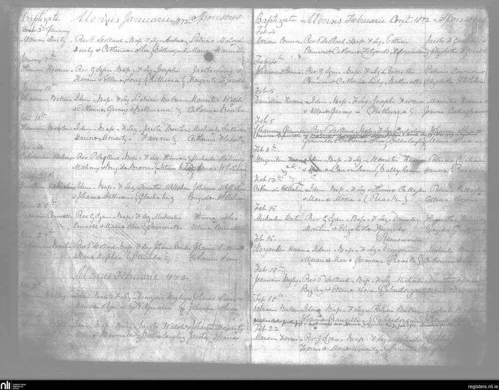 Kilmelchidar; County of Kerry; Diocese of Kerry. Baptisms, Jan. 1872 to Feb. 1872