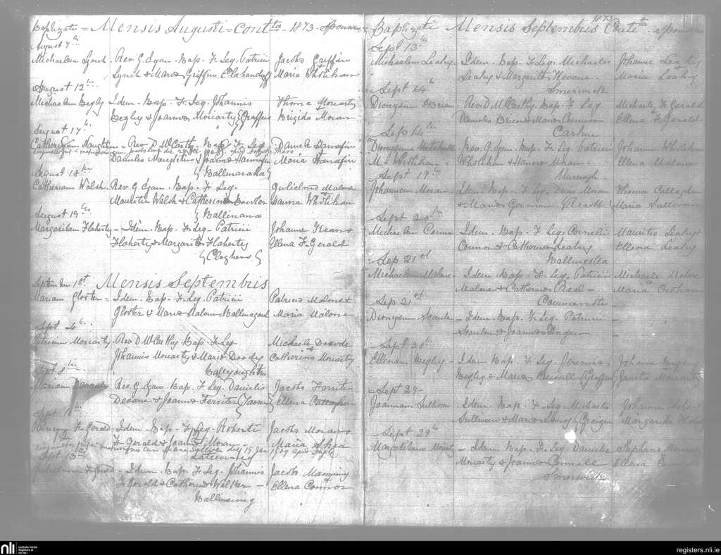 Kilmelchidar; County of Kerry; Diocese of Kerry. Baptisms, Aug. 1873 to Sep. 1873