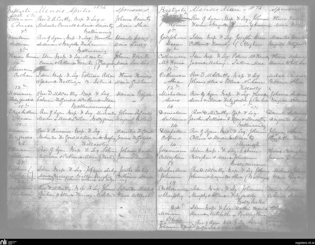 Kilmelchidar; County of Kerry; Diocese of Kerry. Baptisms, Apr. 1874 to May 1874