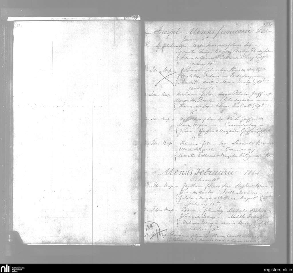 Ballyheigue; County of Kerry; Diocese of Kerry. Baptisms, Jan. 1864 to Feb. 1864
