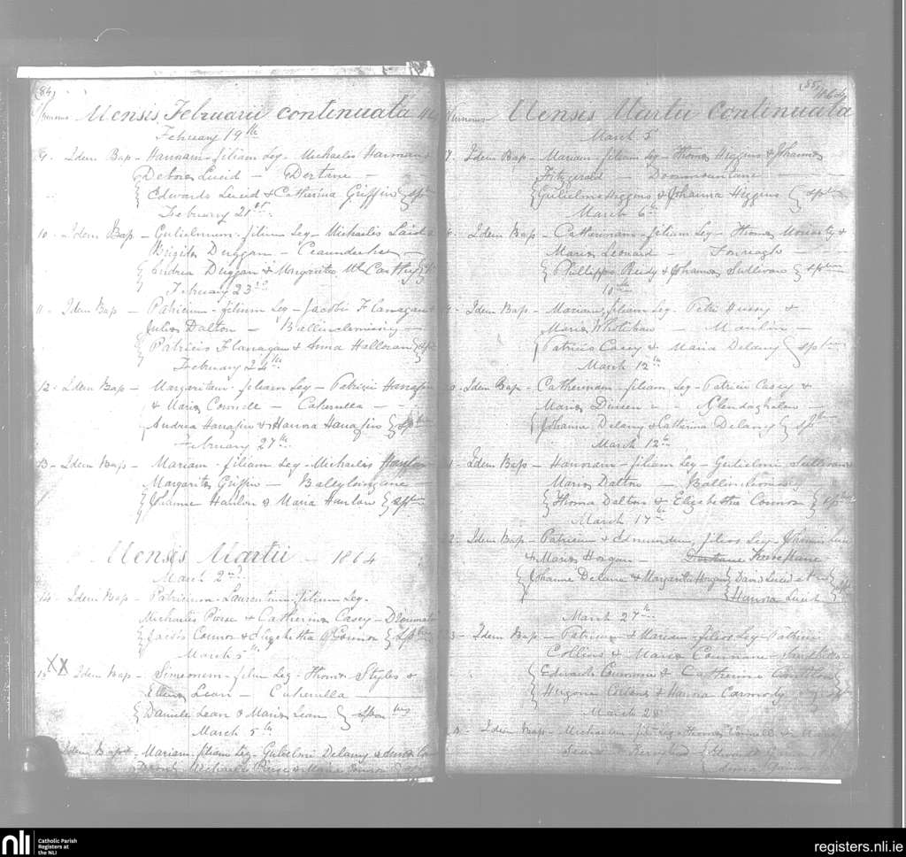 Ballyheigue; County of Kerry; Diocese of Kerry. Baptisms, Feb. 1864 to Mar. 1864