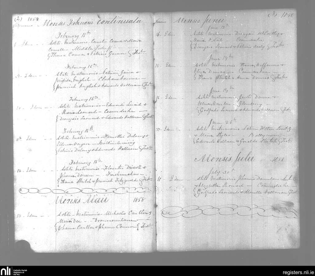 Ballyheigue; County of Kerry; Diocese of Kerry. Marriages, Feb. 1858 to July 1858