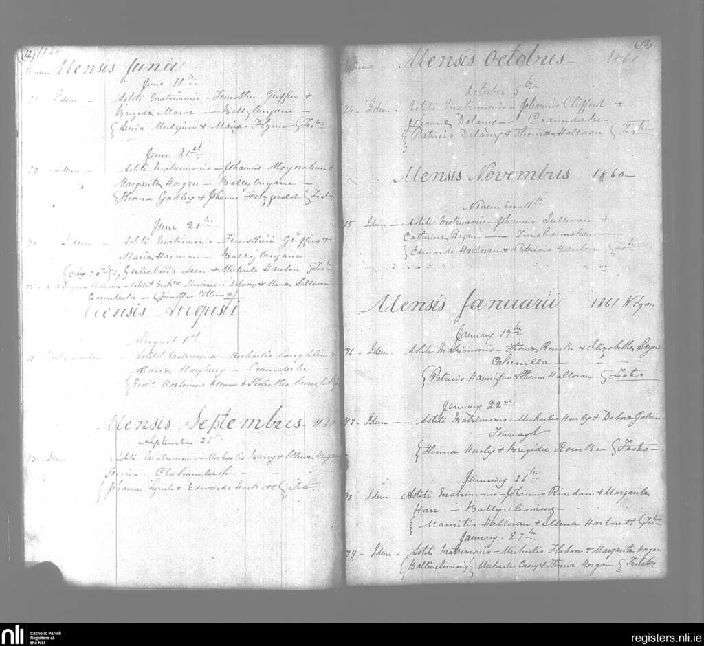 Ballyheigue; County of Kerry; Diocese of Kerry. Marriages, June 1860 to Jan. 1861