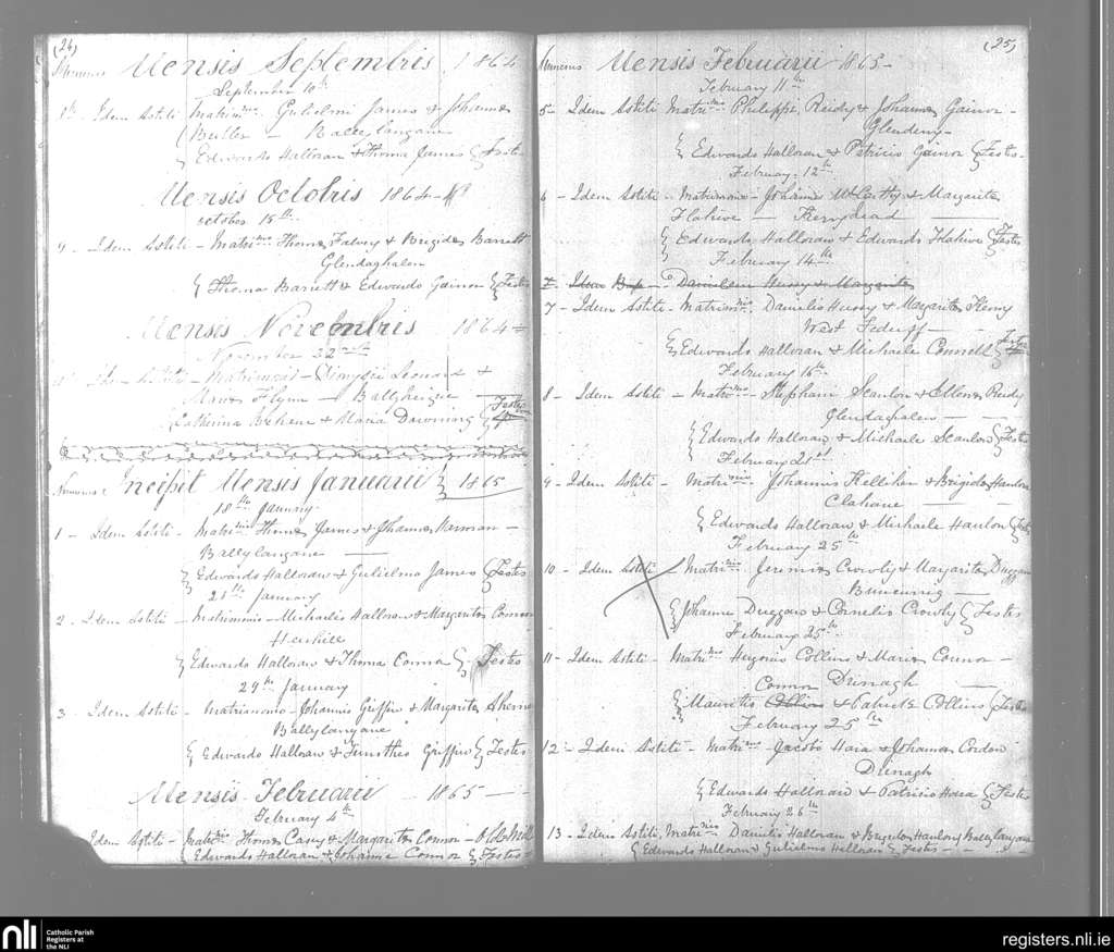 Ballyheigue; County of Kerry; Diocese of Kerry. Marriages, Sep. 1864 to Feb. 1865