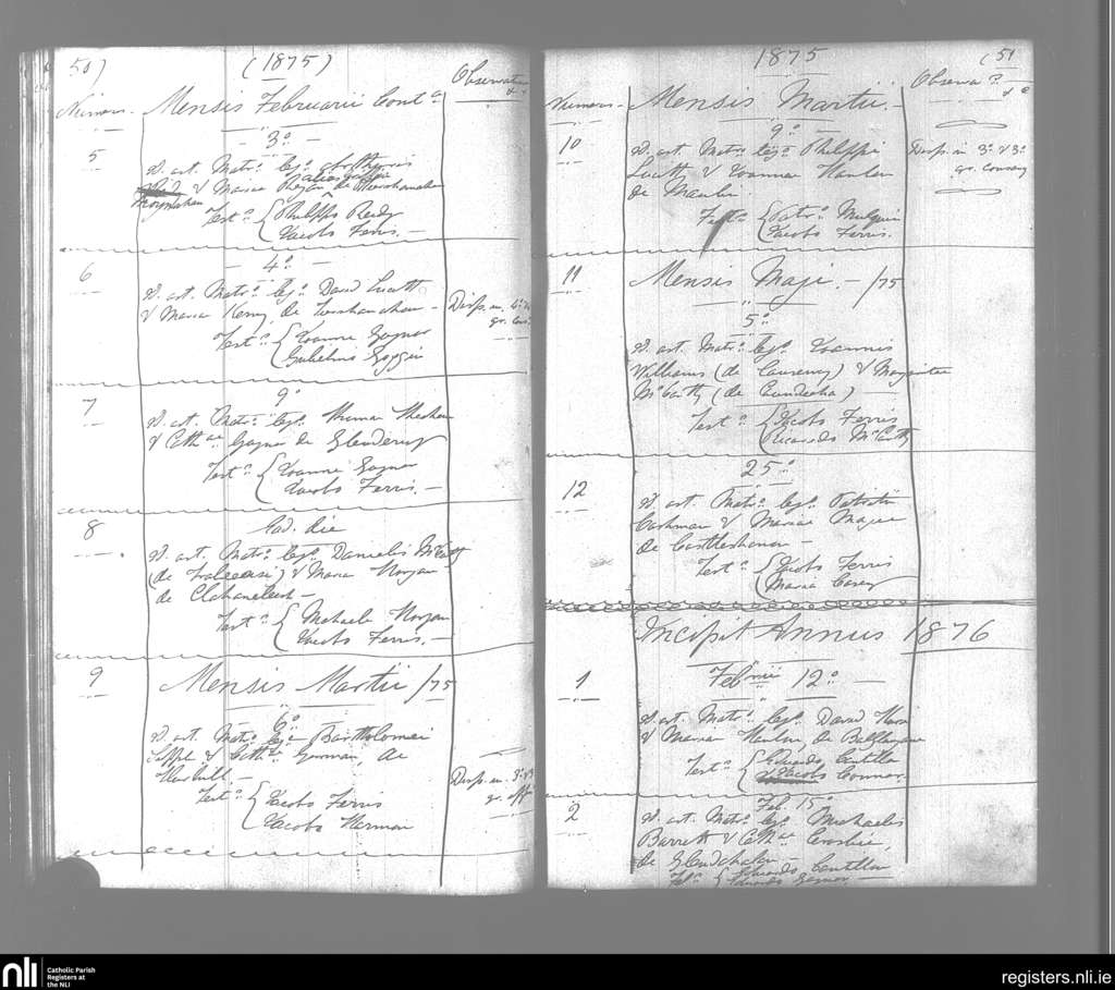 Ballyheigue; County of Kerry; Diocese of Kerry. Marriages, Feb. 1875 to Feb. 1876