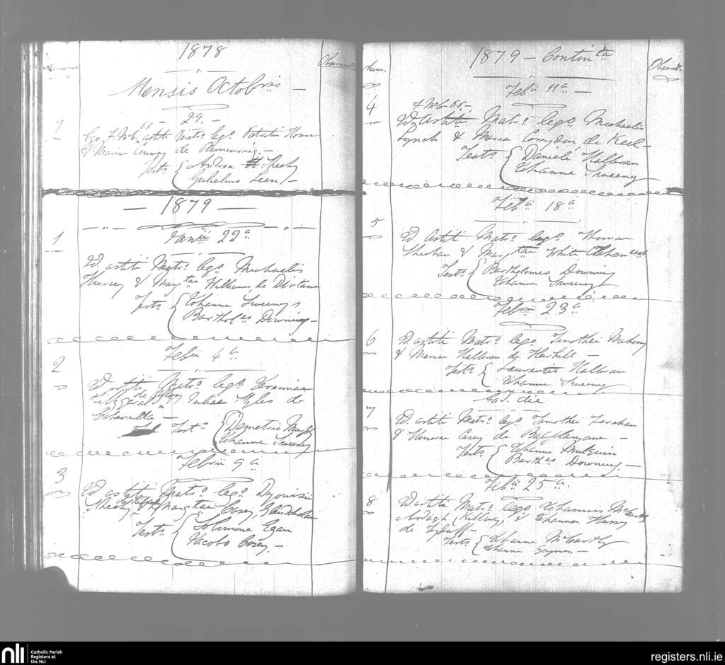 Ballyheigue; County of Kerry; Diocese of Kerry. Marriages, Oct. 1878 to Feb. 1879