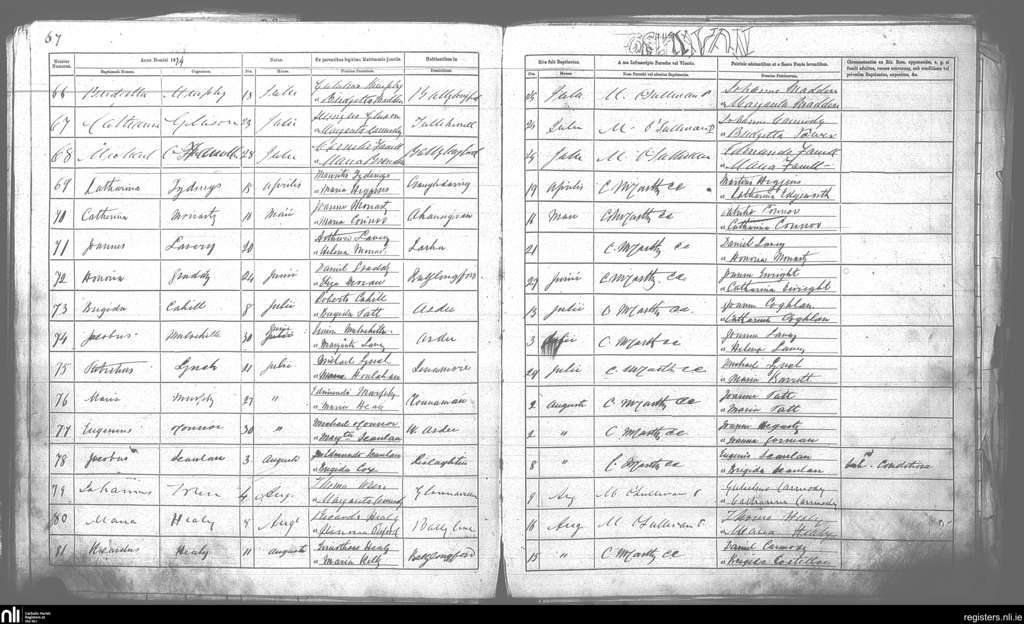 Ballylongford; County of Kerry; Diocese of Kerry. Baptisms, Aug. 1874 to Oct. 1874
