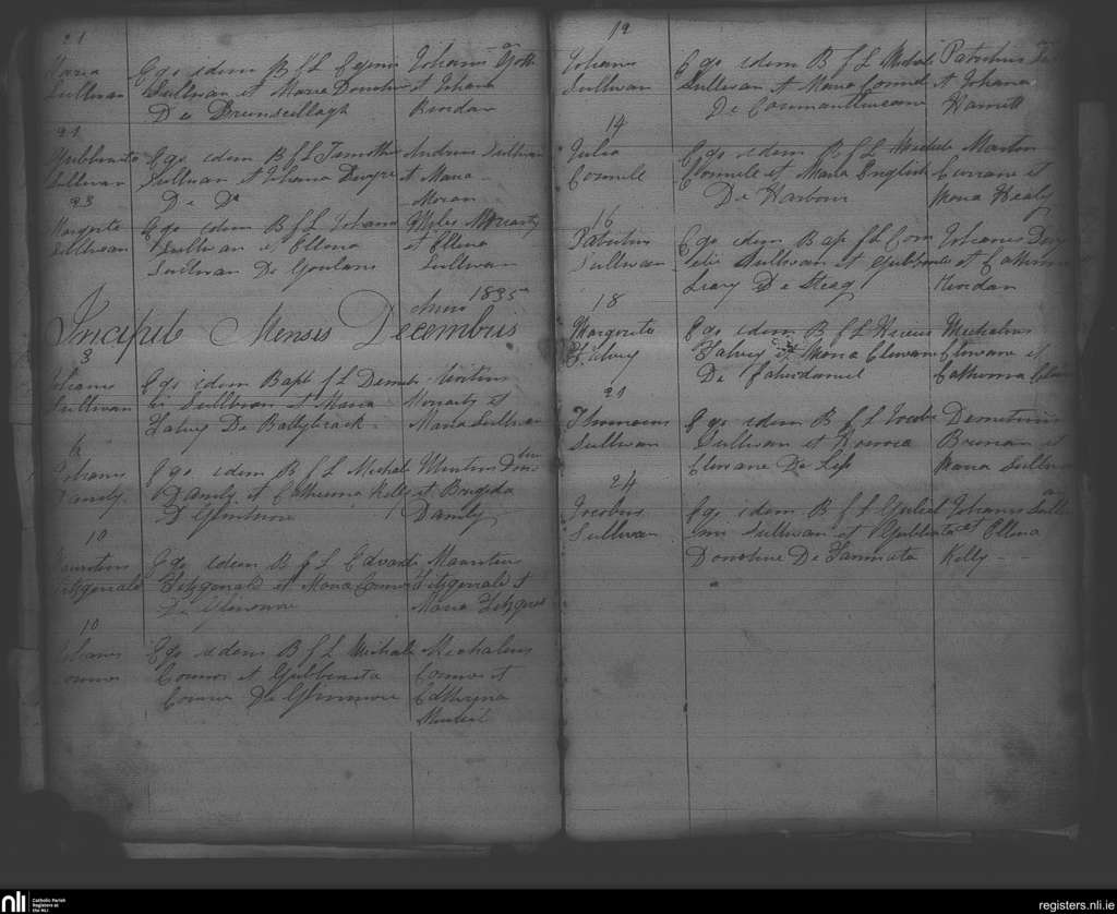 Cahirdaniel; County of Kerry; Diocese of Kerry. Baptisms, Nov. 1835 to Dec. 1835