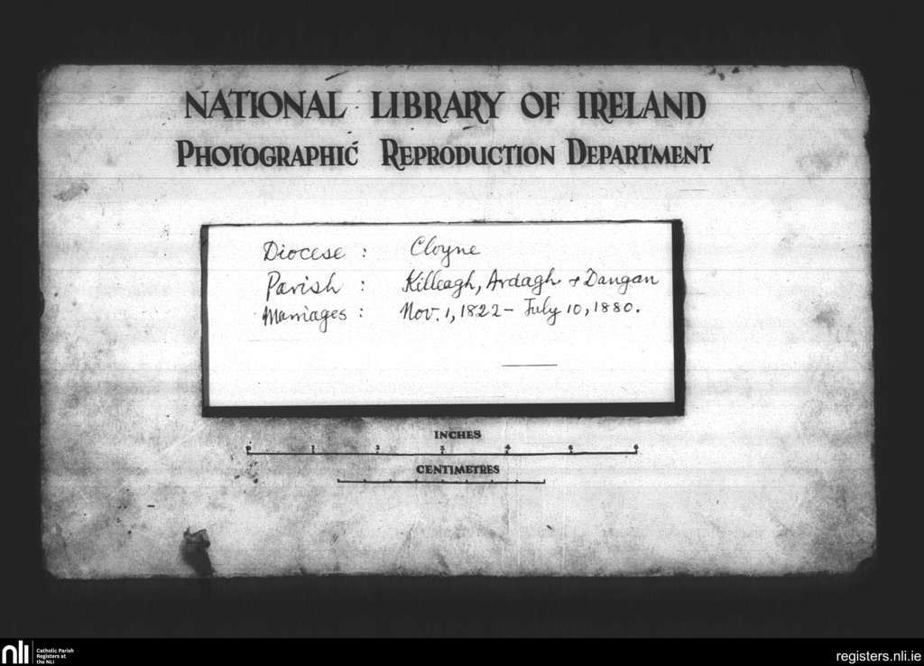 Killeagh; County of Cork; Diocese of Cloyne. Marriages