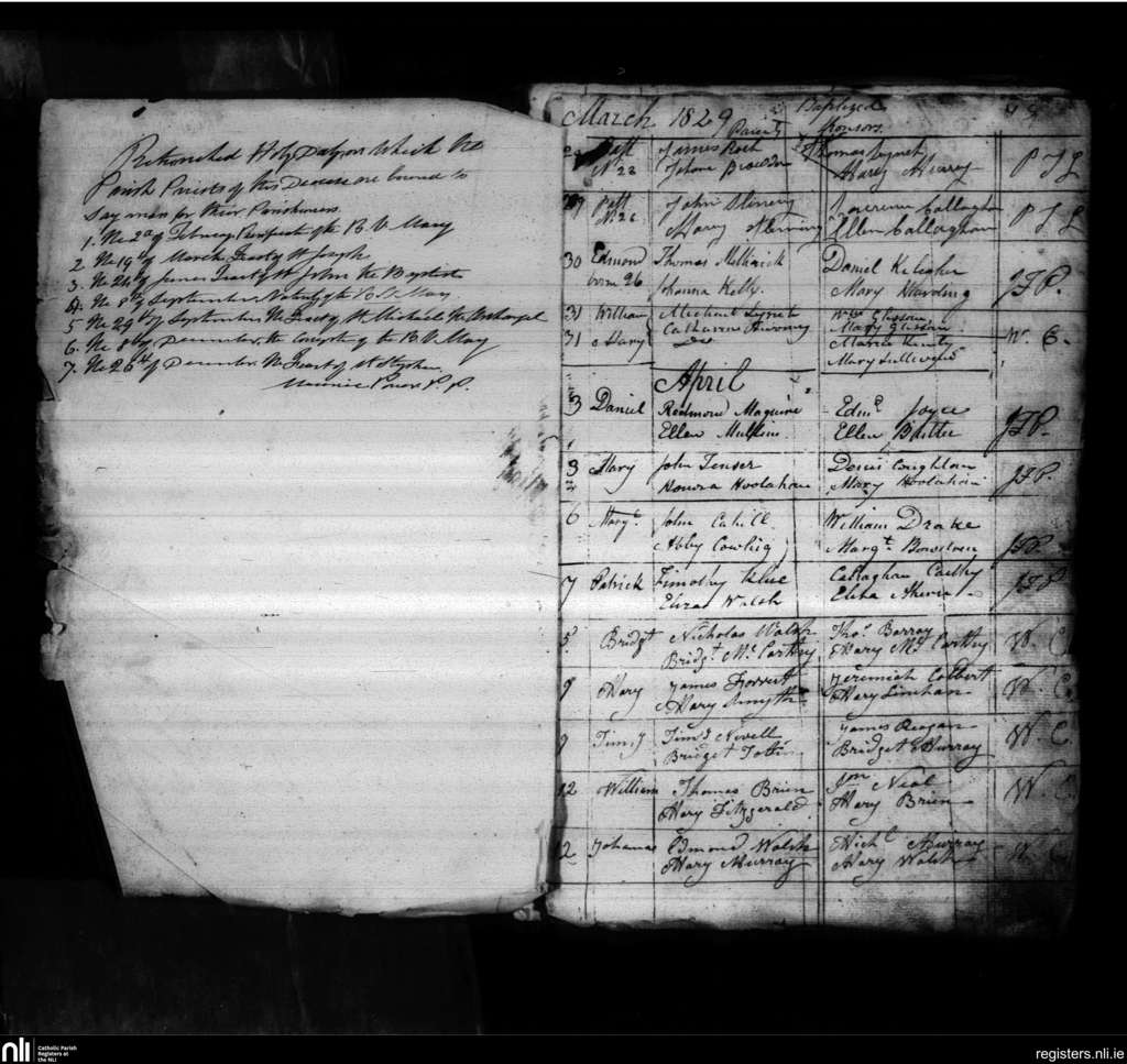 Killeagh; County of Cork; Diocese of Cloyne. Baptisms, Feb. 1828 to Apr. 1829