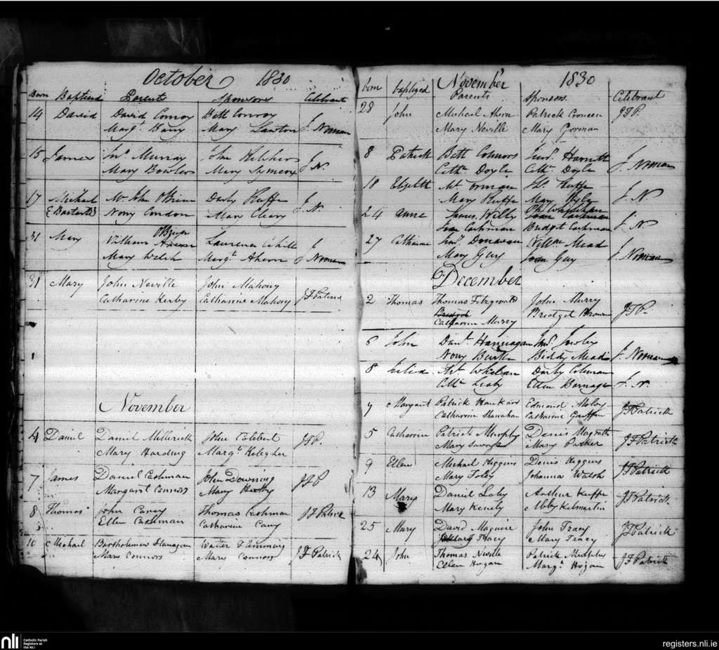 Killeagh; County of Cork; Diocese of Cloyne. Baptisms, Oct. 1830 to Dec. 1830