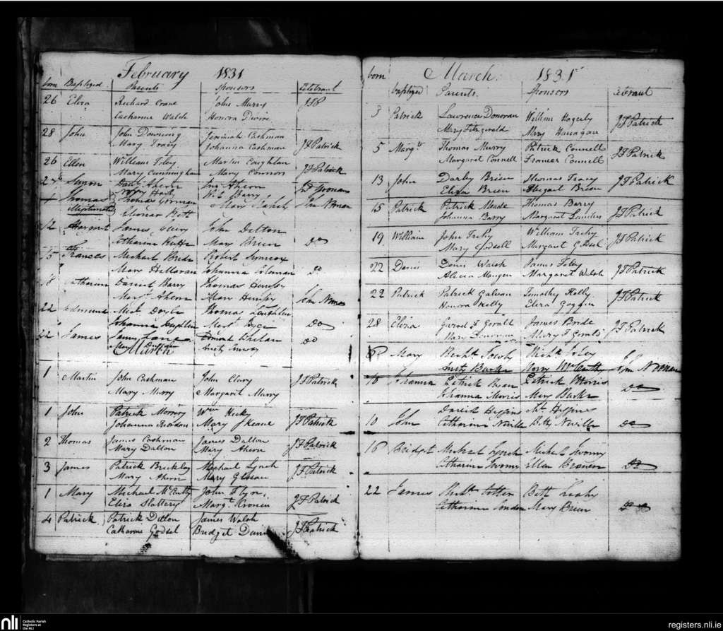 Killeagh; County of Cork; Diocese of Cloyne. Baptisms, Feb. 1831 to Mar. 1831