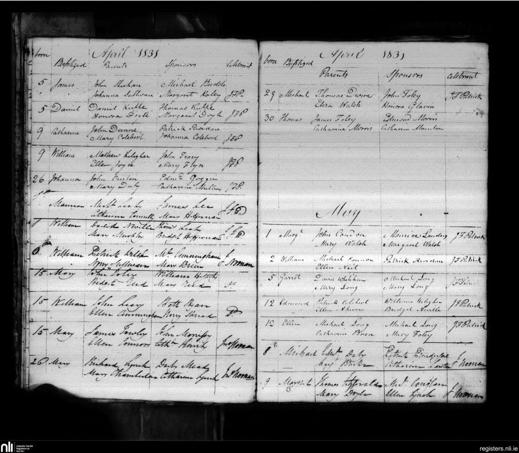 Killeagh; County of Cork; Diocese of Cloyne. Baptisms, Apr. 1831 to May 1831