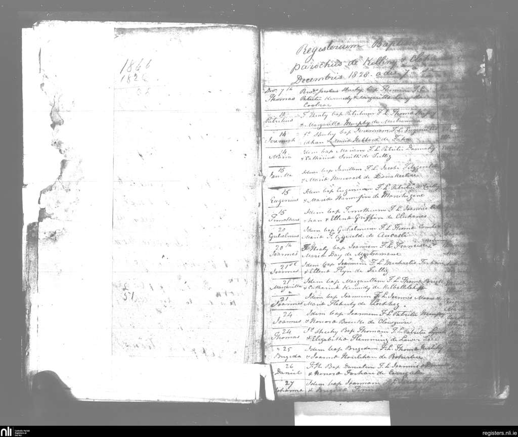 Killiny; County of Kerry; Diocese of Kerry. Baptisms, Dec. 1828