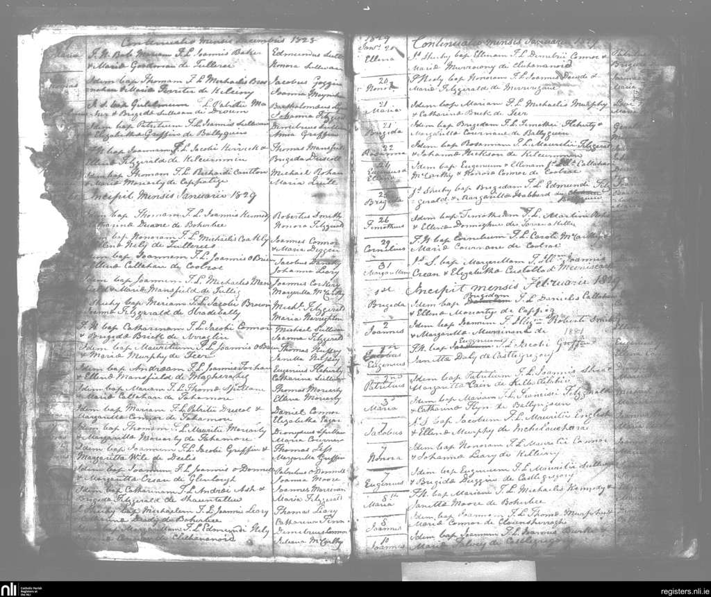 Killiny; County of Kerry; Diocese of Kerry. Baptisms, Dec. 1828 to Feb. 1829