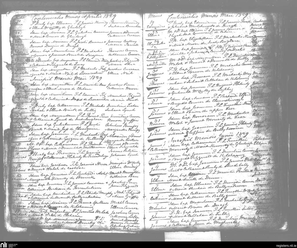 Killiny; County of Kerry; Diocese of Kerry. Baptisms, Apr. 1829 to June 1829