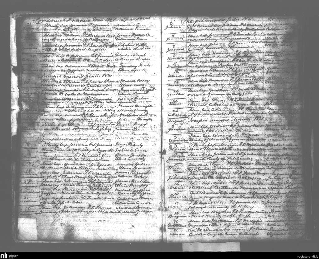 Killiny; County of Kerry; Diocese of Kerry. Baptisms, May 1831 to Aug. 1831