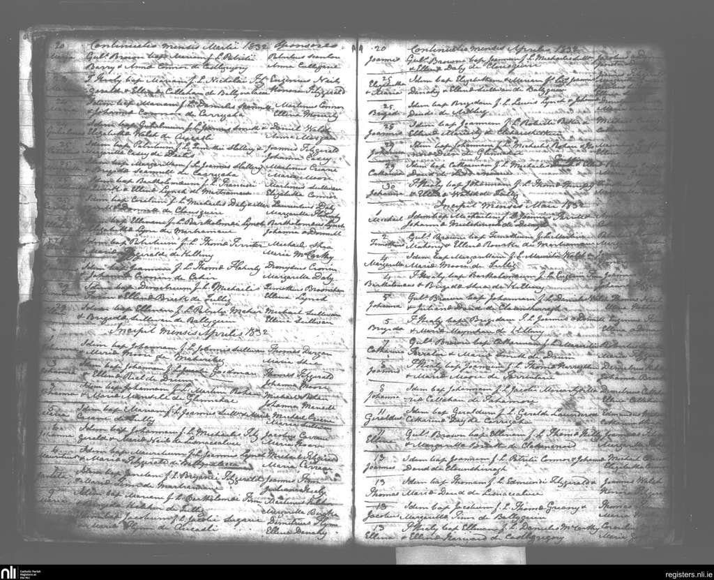 Killiny; County of Kerry; Diocese of Kerry. Baptisms, Mar. 1832 to May 1832