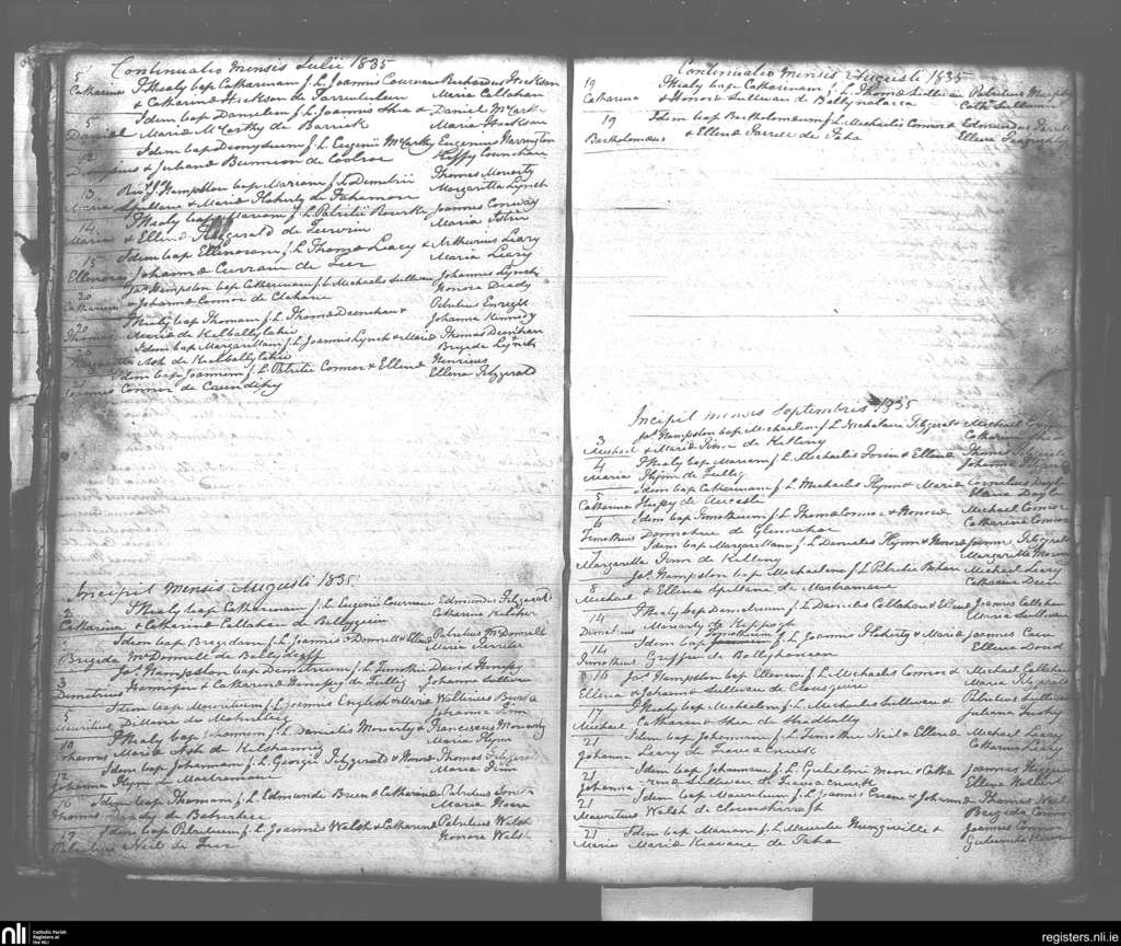 Killiny; County of Kerry; Diocese of Kerry. Baptisms, July 1835 to Sep. 1835