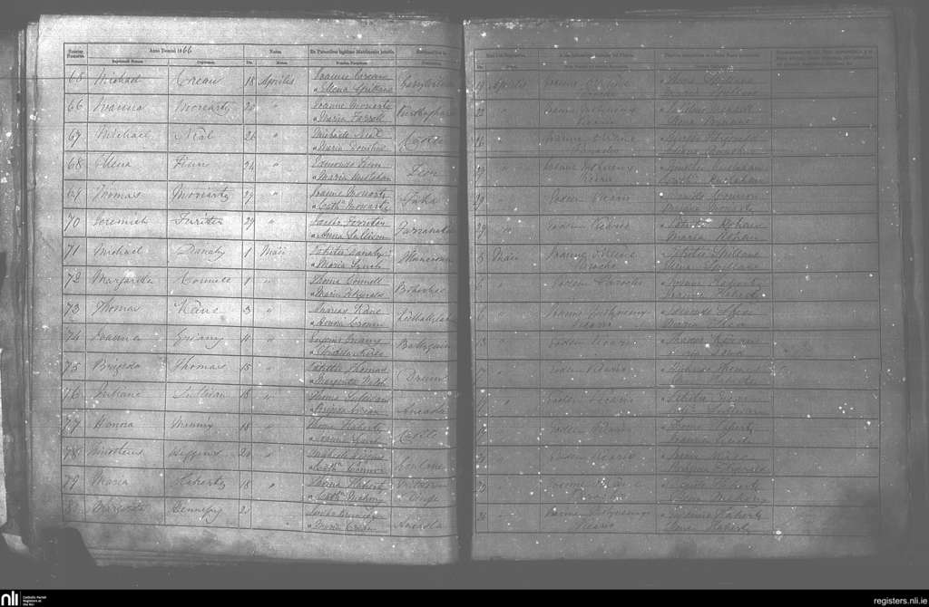 Killiny; County of Kerry; Diocese of Kerry. Baptisms, Apr. 1866 to May 1866