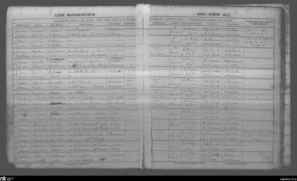 Killiny; County of Kerry; Diocese of Kerry. Marriages, Jan. 1866 to Feb. 1866