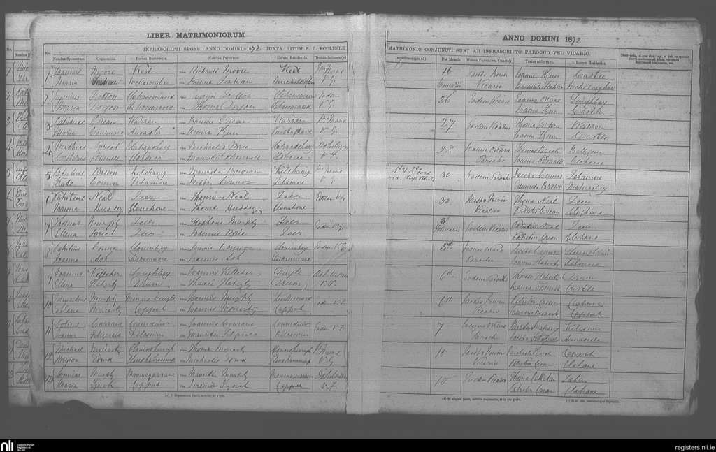 Killiny; County of Kerry; Diocese of Kerry. Marriages, Jan. 1872 to Feb. 1872
