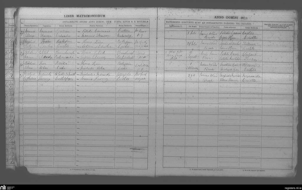 Killiny; County of Kerry; Diocese of Kerry. Marriages, July 1873 to Nov. 1873