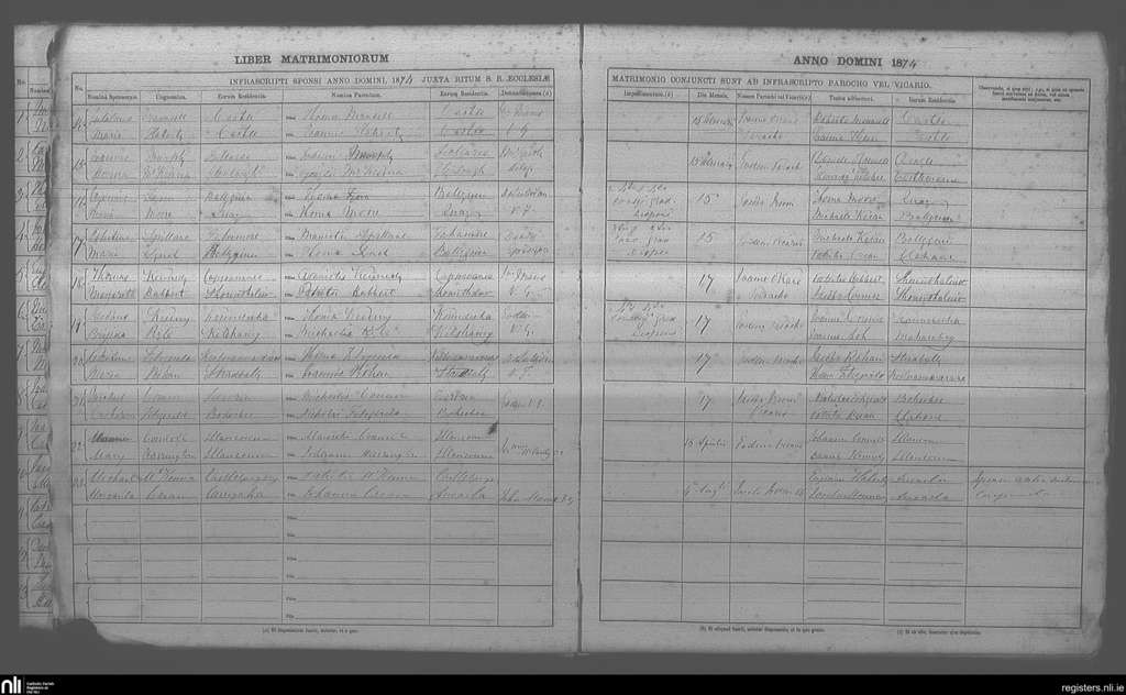 Killiny; County of Kerry; Diocese of Kerry. Marriages, Feb. 1874 to Aug. 1874