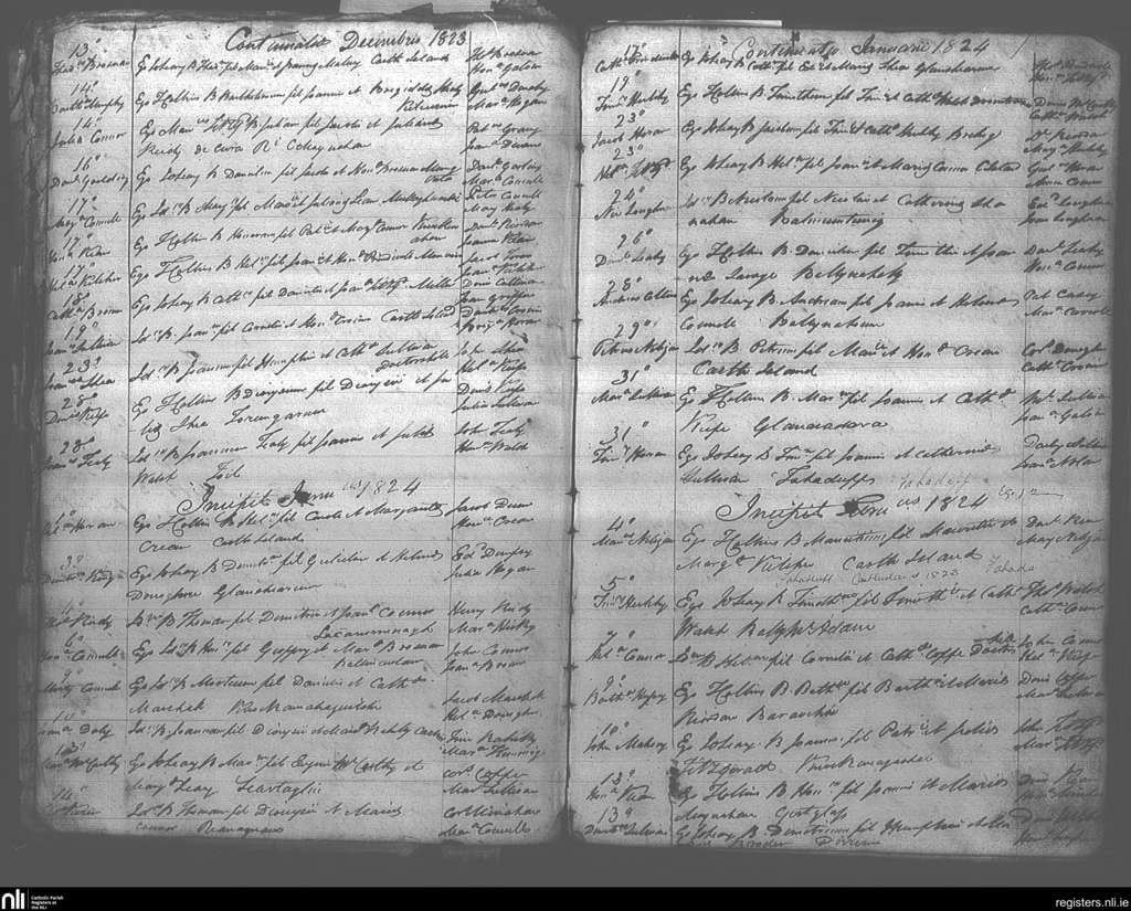 Castleisland; County of Kerry; Diocese of Kerry. Baptisms, Dec. 1823 to Feb. 1824