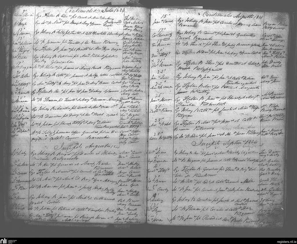 Castleisland; County of Kerry; Diocese of Kerry. Baptisms, July 1824 to Sep. 1824