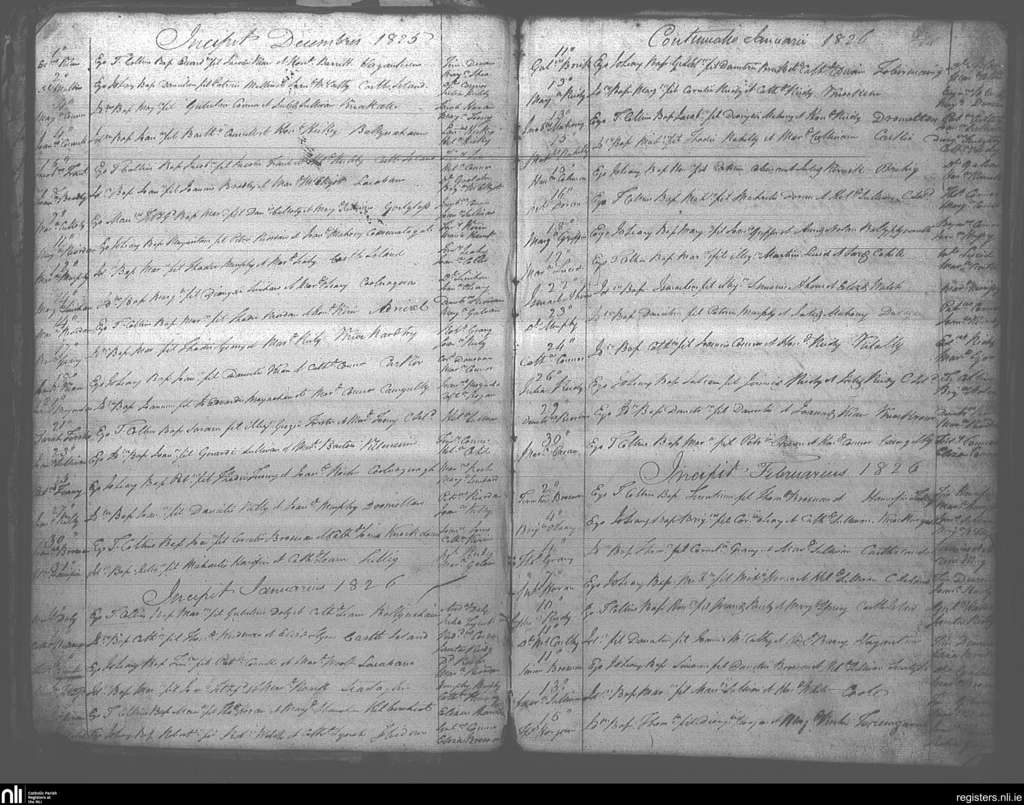 Castleisland; County of Kerry; Diocese of Kerry. Baptisms, Dec. 1825 to Feb. 1826