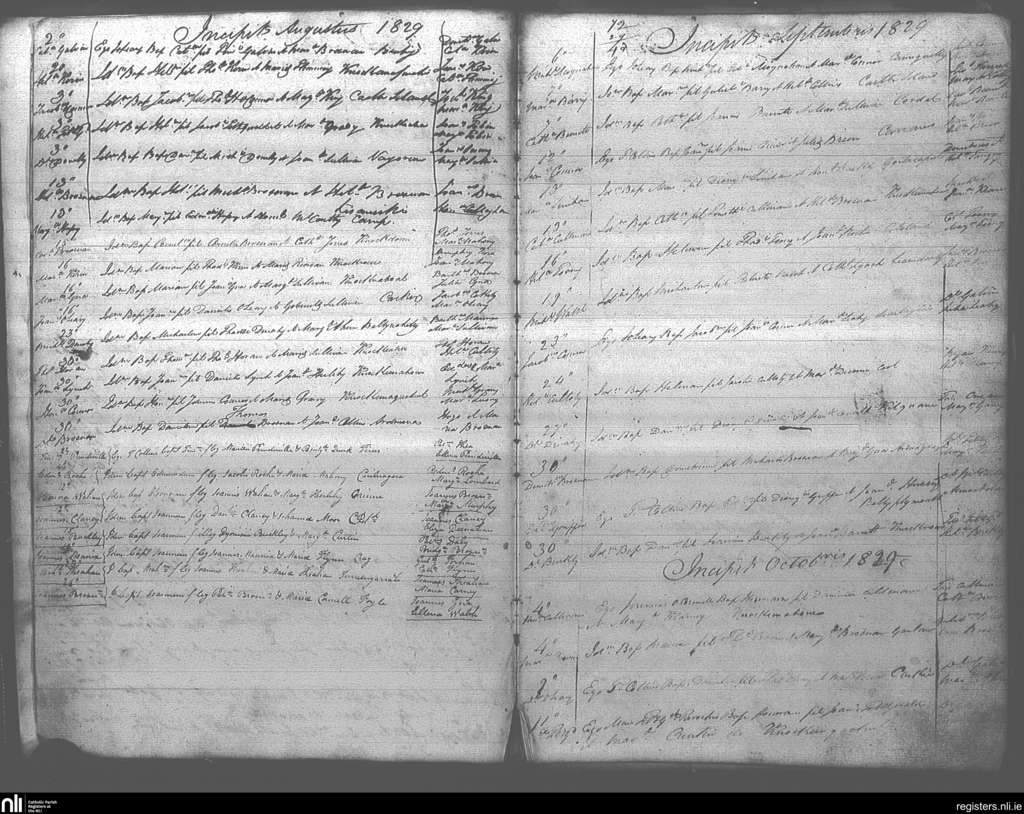 Castleisland; County of Kerry; Diocese of Kerry. Baptisms, Aug. 1829 to Oct. 1829