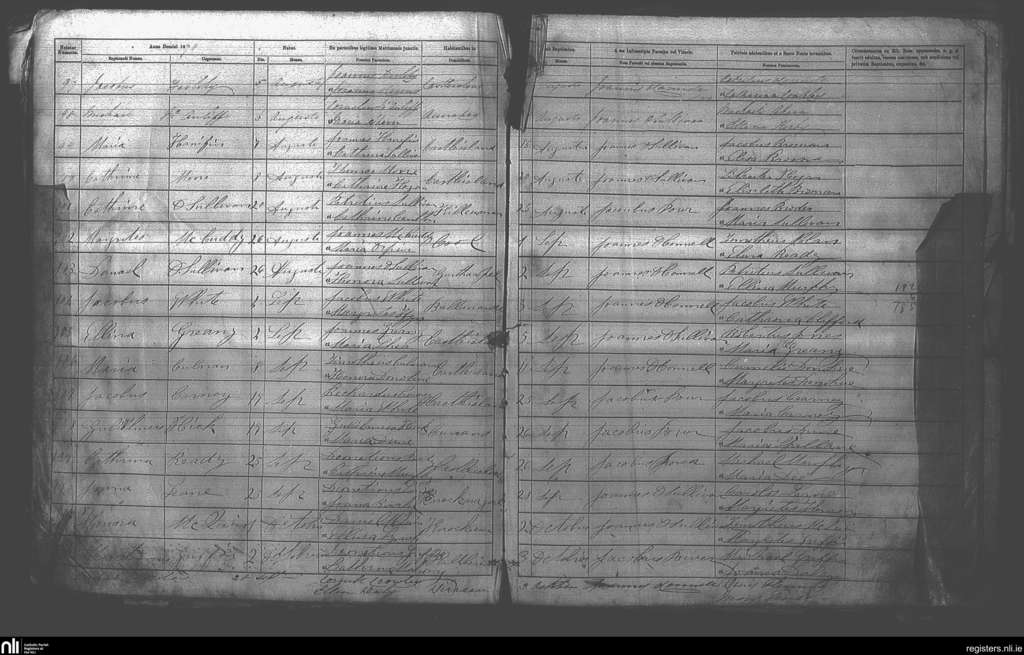 Castleisland; County of Kerry; Diocese of Kerry. Baptisms, Aug. 1870 to Oct. 1870