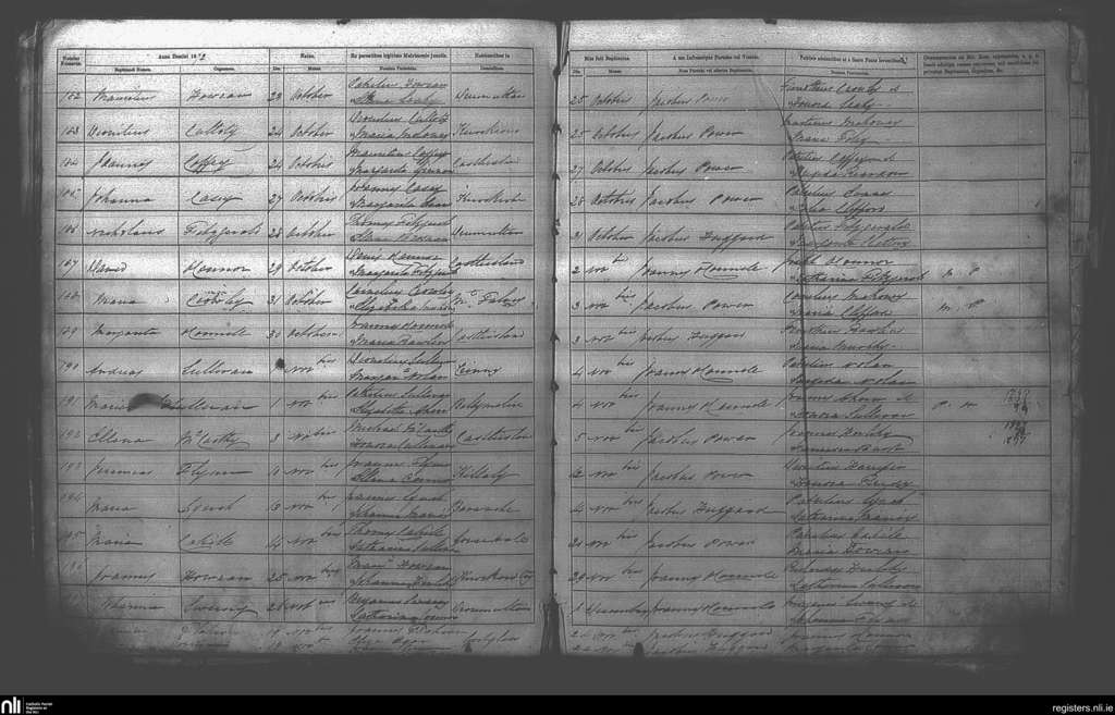 Castleisland; County of Kerry; Diocese of Kerry. Baptisms, Oct. 1872 to Dec. 1872