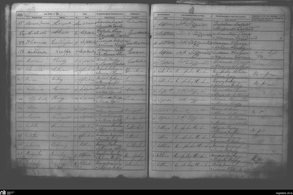 Castleisland; County of Kerry; Diocese of Kerry. Baptisms, Sep. 1876 to Oct. 1876