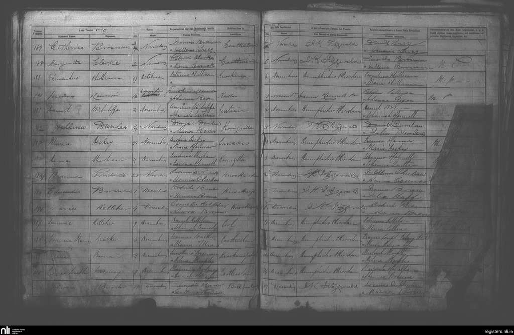 Castleisland; County of Kerry; Diocese of Kerry. Baptisms, Nov. 1876 to Dec. 1876