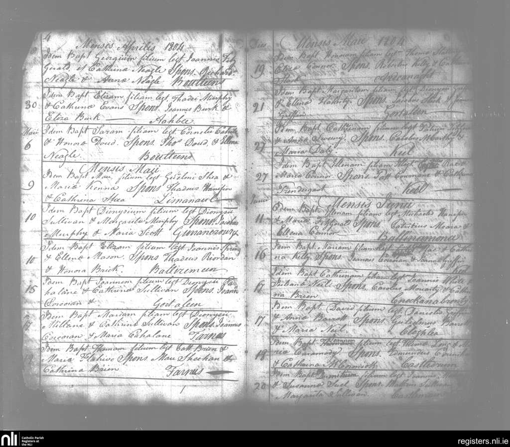 Keel; County of Kerry; Diocese of Kerry. Baptisms, Apr. 1804 to June 1804